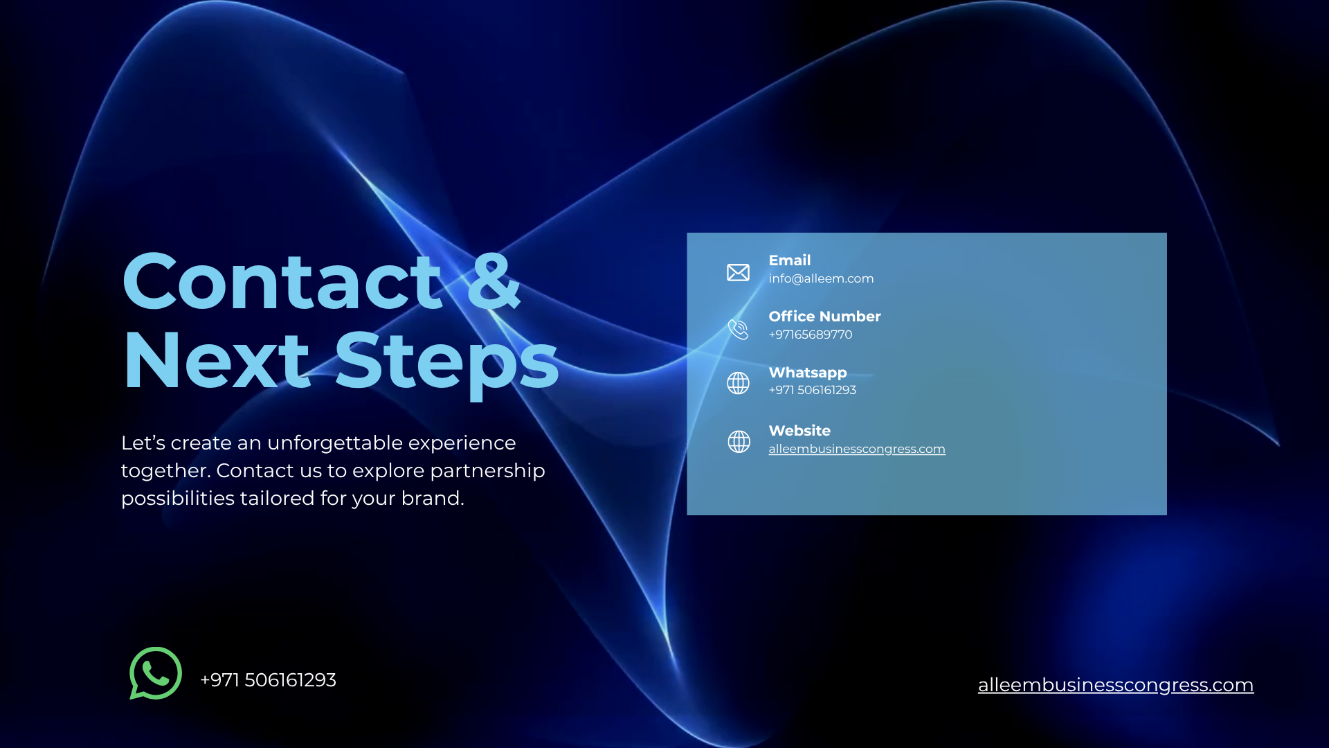 We invite forward-thinking companies and organizations to join us in supporting the Alleem Business Congress—a nonprofit initiative dedicated to driving sustainable economic growth, fostering leadership excellence, and empowering communities through impactful dialogue and collaboration. By partnering with us, you demonstrate a commitment not only to corporate social responsibility but to building a future where innovation, ethical business, and inclusive development thrive. Your support fuels meaningful change, opens doors to powerful networks, and positions your organization as a catalyst for positive global transformation.
